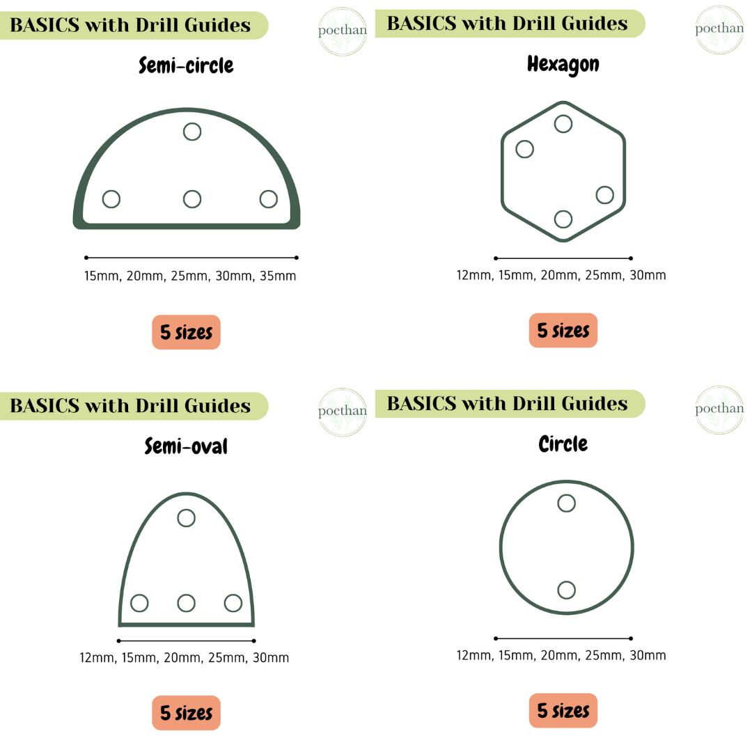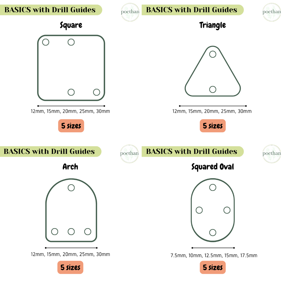 Included: all BASICS with Drill Guides. 10 styles, 5 sizes.